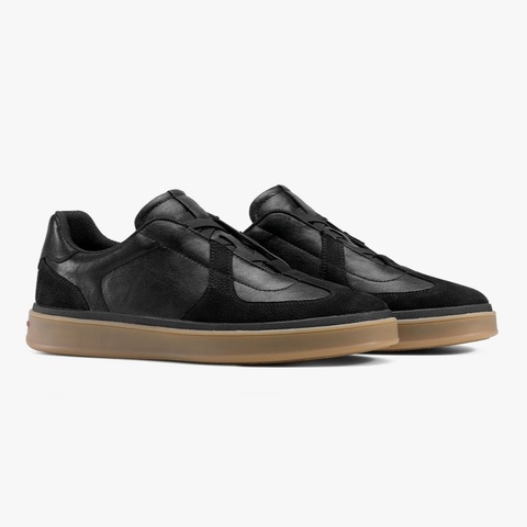 New Breathable Flat Sports Black Shoes for Men's Casual Leather Upper Men's Walking Shoes