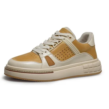 Men's Casual Skateboarding Shoes with Thick Sole Yellow Leather and Ventilated Design Increase Leisure Sports Board Shoes