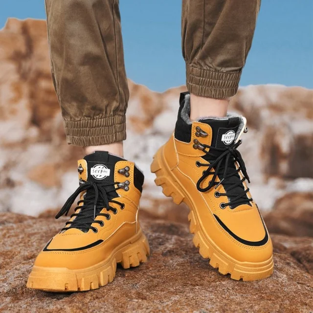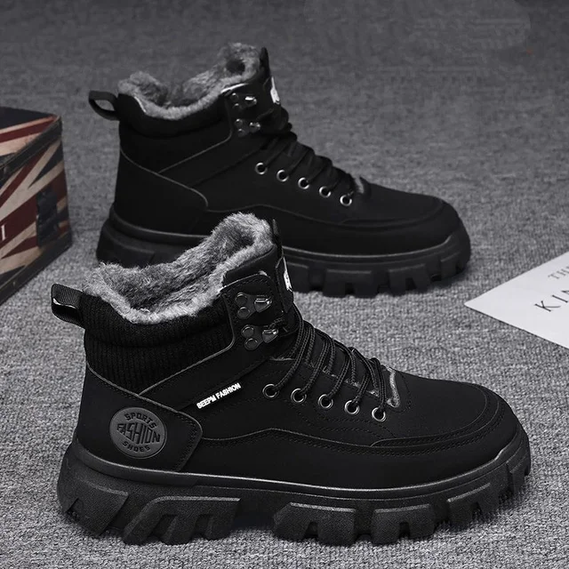 Men's High-Top British Skate Boots Trendy Mid-Angle Casual Shoes Mesh Upper for Fall Winter Ankle-Height Snow